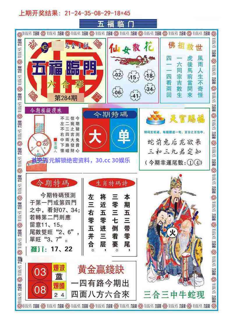 285期:密门仙机/心水特码信/黄大仙天书/波色生肖诗/生肖歇后语